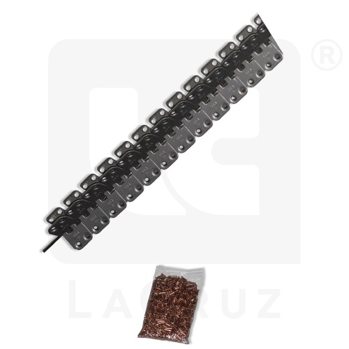 Reinforced stainless steel joiner with spikes for joining belt portions for Pellenc grape harvesters. Length: 1 m.
